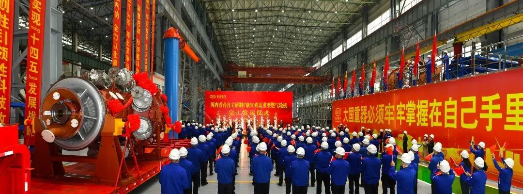 四川省副省长罗强宣布“国内首台自主研制F级50兆瓦重型燃气轮机完工发运”。